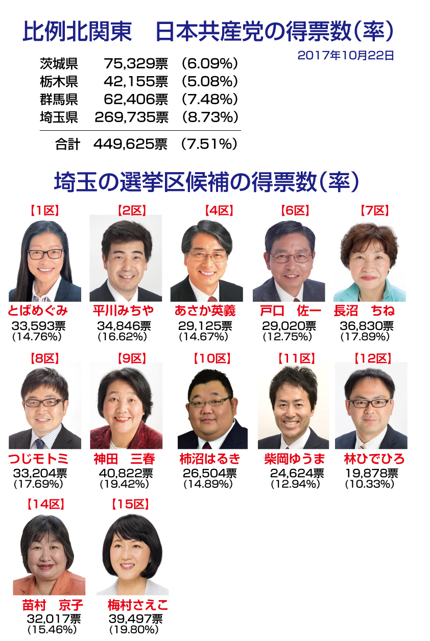 北関東比例得票数(率) 埼玉の選挙区候補の得票数(率)